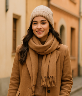 Os cachecóis de lã e pashminas são essenciais, não apenas pela função térmica, mas também pelo charme. Chapéus de aba larga e boinas francesas completam o look com um toque retrô e elegante.
