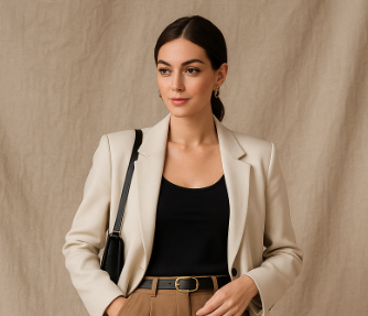 Não é preciso gastar muito para parecer sofisticada — muitas vezes, os acessórios certos são o que transformam completamente o visual. Um cinto bem estruturado, uma bolsa neutra e joias discretas são detalhes que fazem toda a diferença.