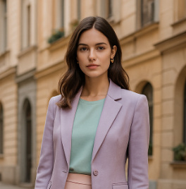 Em 2025, os looks femininos com tons pastéis aparecem repaginados. As passarelas mostram o uso dessas cores em peças estruturadas e tecidos nobres — uma fusão entre a leveza e o poder.